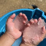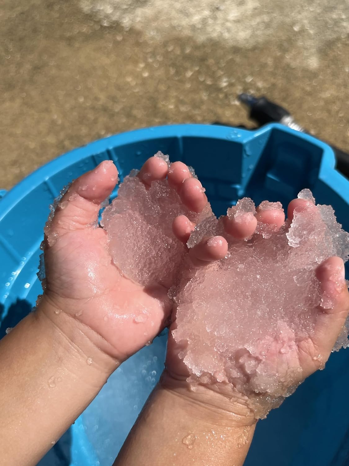 Sensory Bins: Add cups and molds and make sand castle-like creations with the slush (more water).